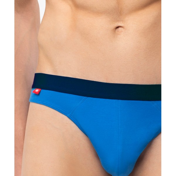 Slipy ATLANTIC, majtki męskie z ozdobną zewnętrzną gumą, bawełniane z elastanem, granatowe, niebieskie, czerwone, kroju sport, znanej z produktów najwyższej jakości, marki ATLANTIC.