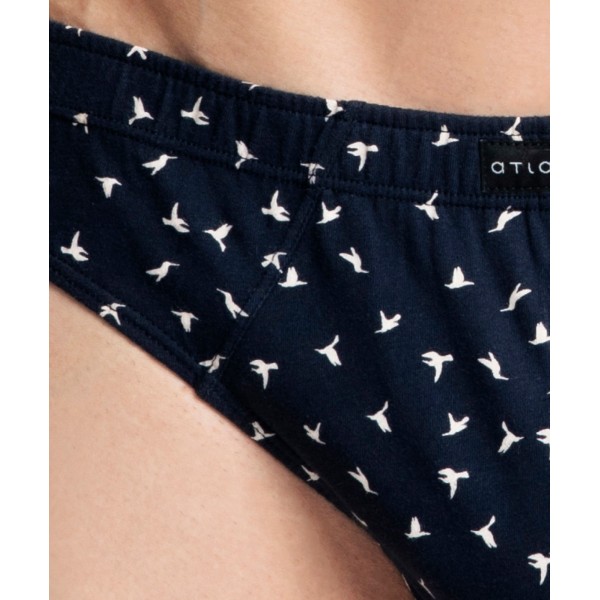 Slipy męskie ATLANTIC, trójpak kroju sport, majtki bawełniane, granatowe i szare w ptaszki, gładkie niebieskie, sportowe, znanej z produktów najwyższej jakości, marki ATLANTIC.