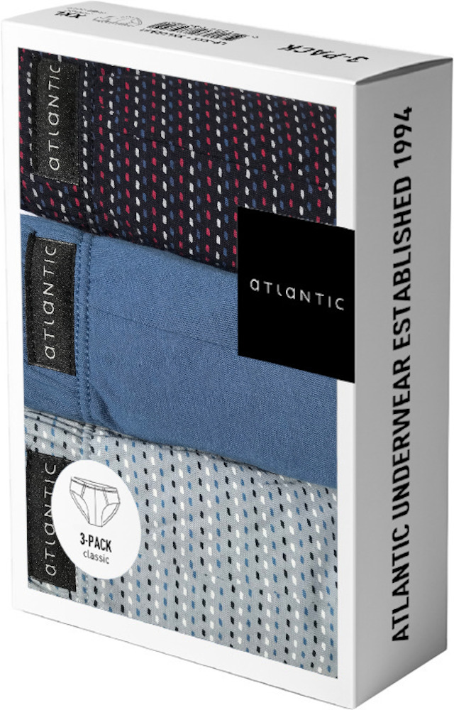 Slipy ATLANTIC niebieskie, granatowe i szare w paski, majtki męskie klasyczne bawełniane, trójpak slipów classic, znanej z produktów najwyższej jakości, marki ATLANTIC.