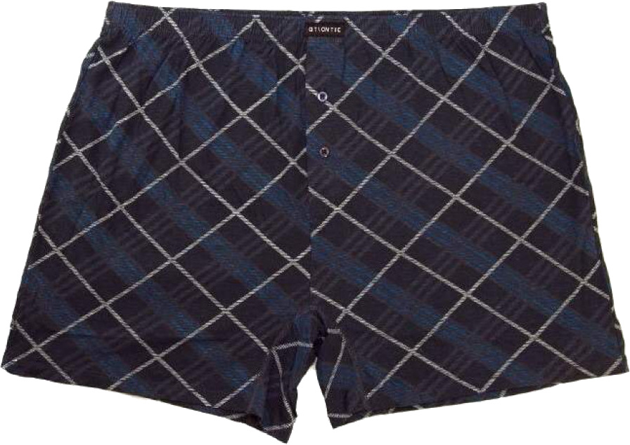 Bokserki męskie ATLANTIC, granatowe w kratkę, szorty luźne bawełniane, klasyczne majtki z długimi nogawkami i rozporkiem, znanej z produktów najwyższej jakości, marki ATLANTIC.